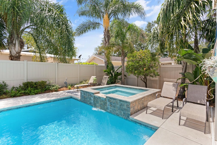 Pool is not heated, but is available for guest use. Sorry, Hot Tub is not available for guest use. Controls are located in the main home and are not accessible to management.